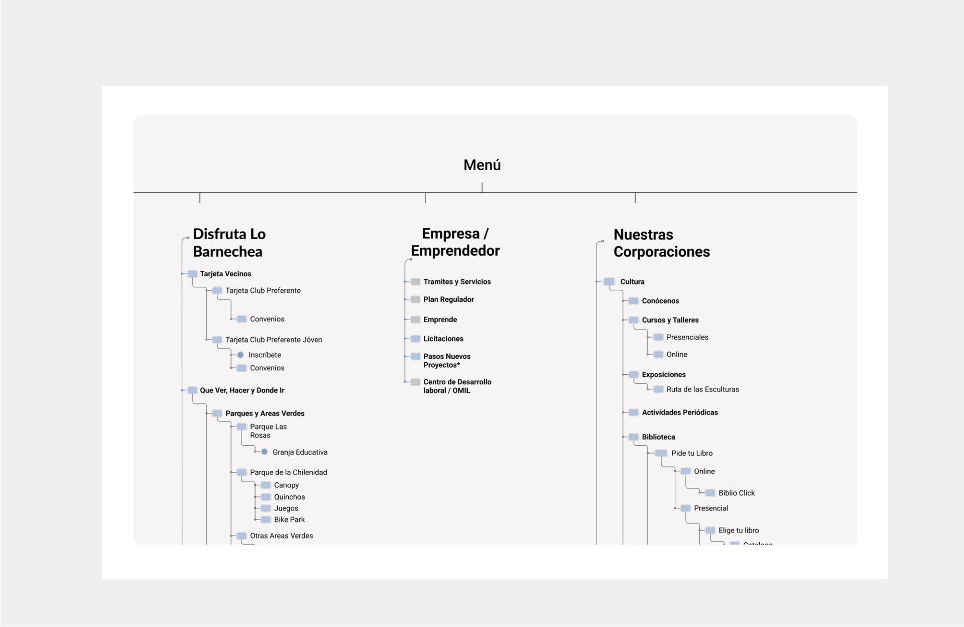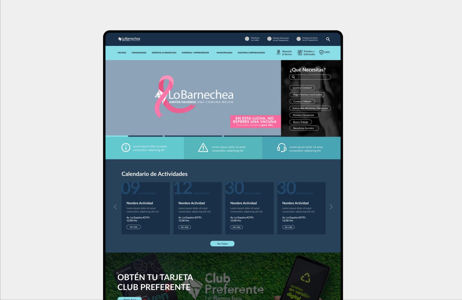 Este proyecto consistió en reestructurar la web de la municipalidad de lo barnechea y crear una nueva arquitectura de la información para dicha web. La municipalidad consta con mucha información, programas y actividades, todas ellas plasmadas en una sola web, sin jerarquía ni orden, lo cual hacia muy difícil para el usuario encontrar las secciones e inforamción que buscaba.