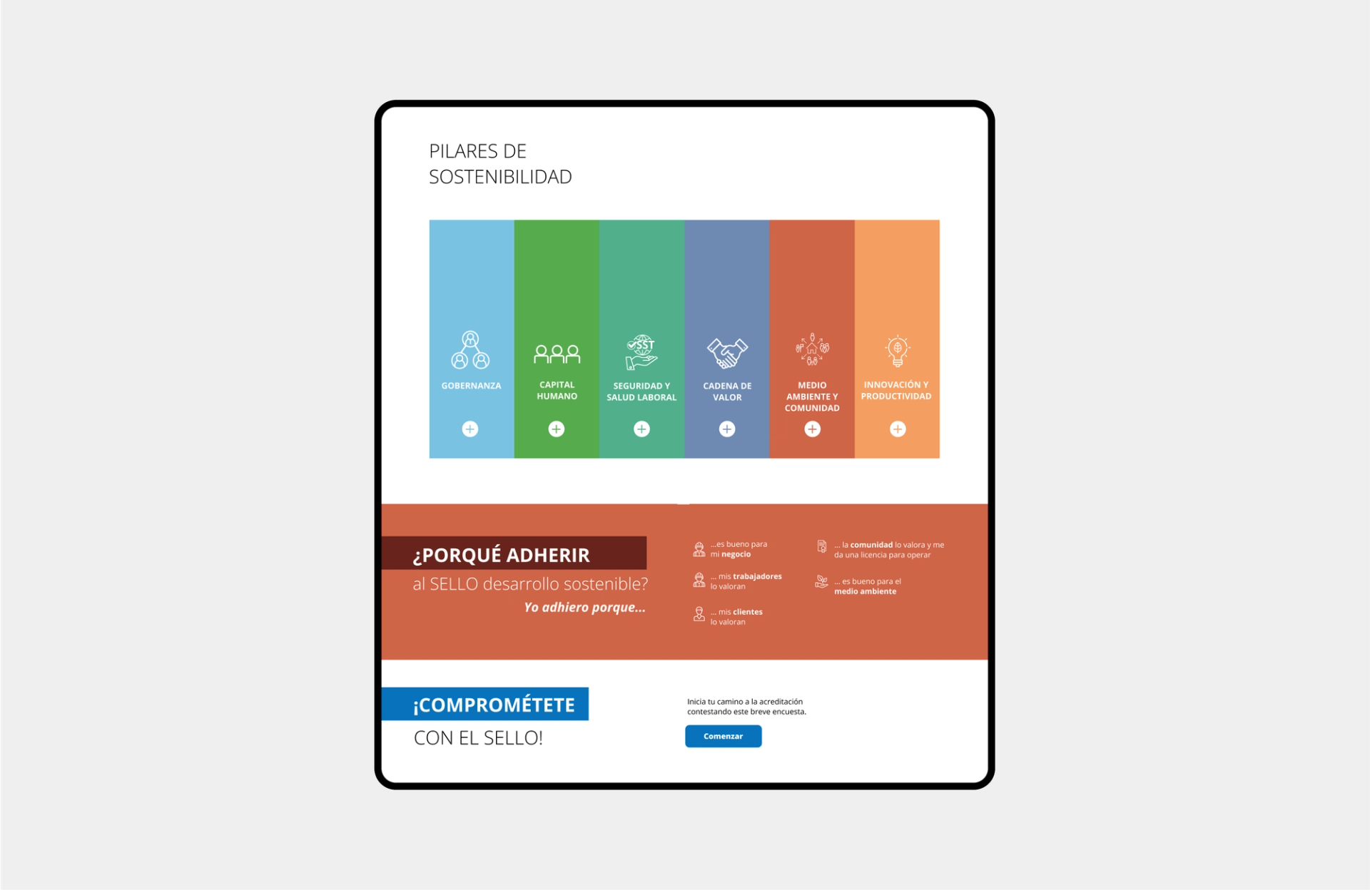 El encargo consistía en realizar una web que plasmara el programa de objetivos sostibles para la CChS, con una sección de noticias, mostrar los pilares de los objetivos sostenibles, sección de preguntas frecuentes y una sección con las practicas sostenibles para las empresas que pertenecen a la CChS