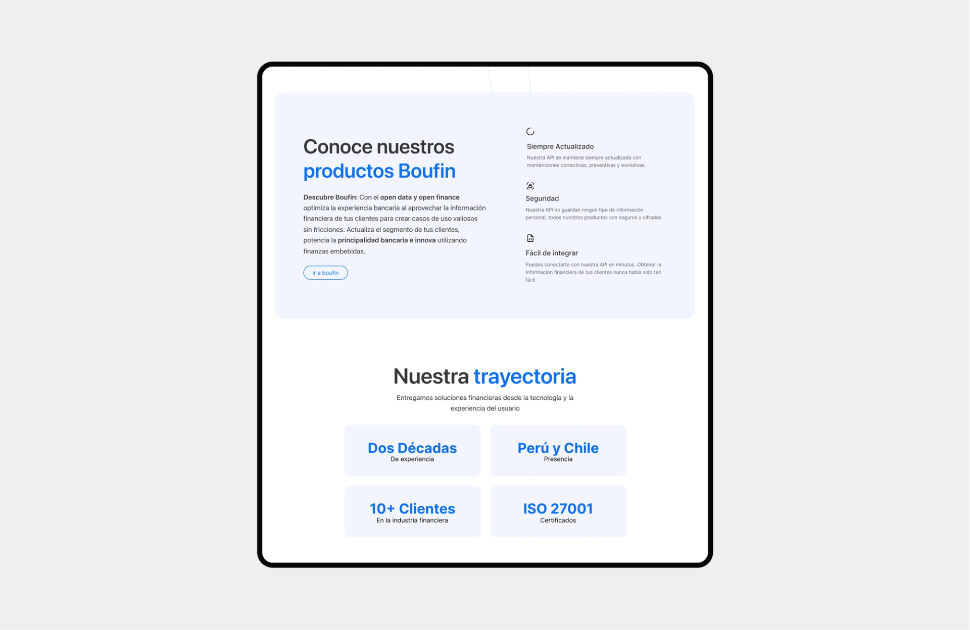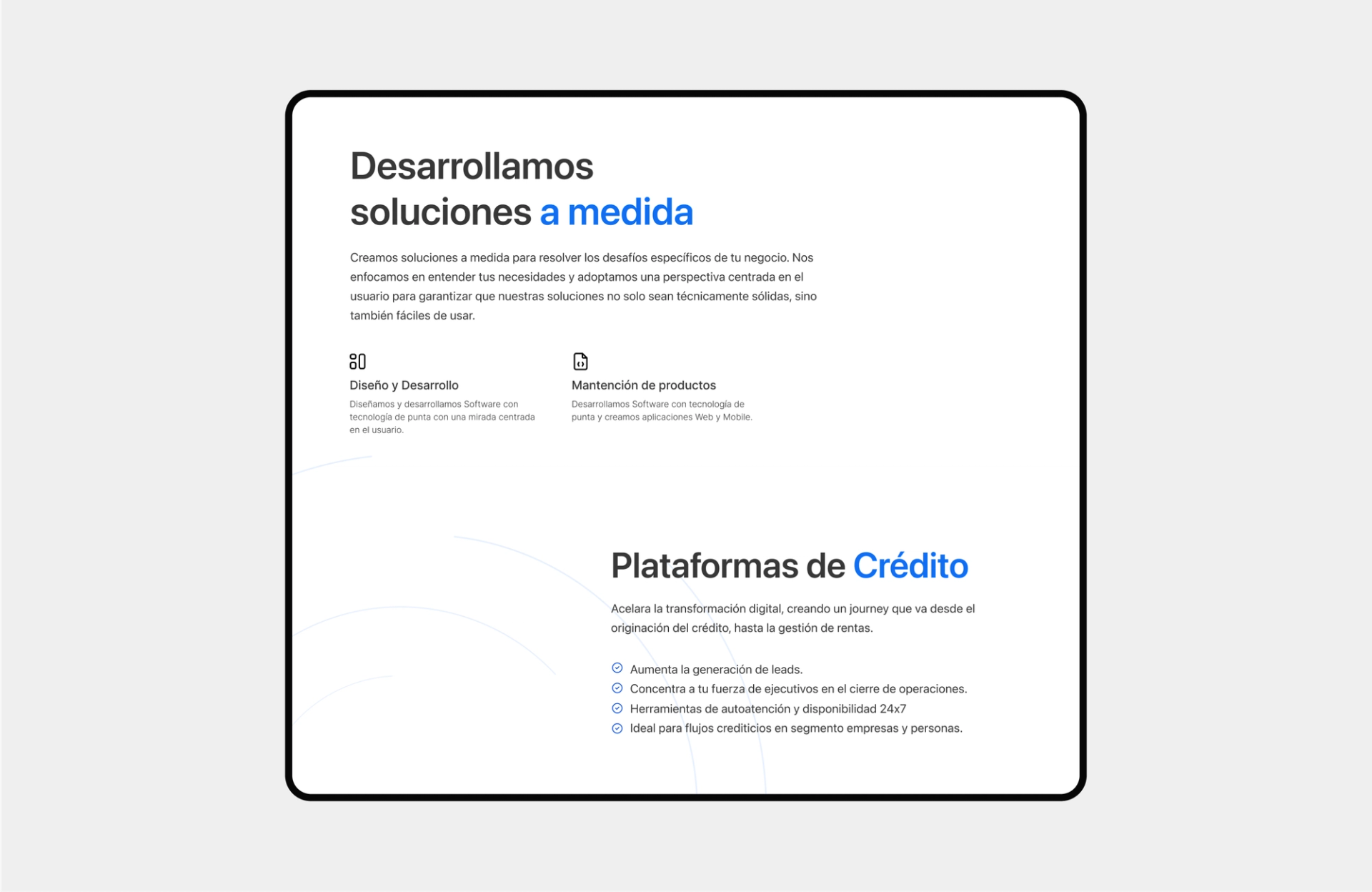En este proyecto, me encargué del diseño UX y UI con un enfoque minimalista y moderno. Se trata de una página web que combina elementos corporativos para mostrar a los clientes, la experiencia y áreas de trabajo de la empresa, así como los casos de éxito que la posicionan en el mercado. La estética minimalista y moderna se utilizó para mostrar el carácter de la empresa